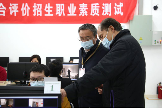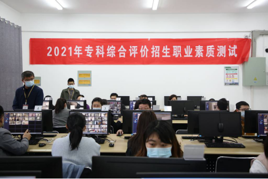 为确保本次考试顺利实施,学校组织召开了2021年专科综合评价招生工作协调会,进一步加强考试管理体系和考试保障支持体系建设,全面贯彻落实全省2021年招生工作会议精神,切实让“三服务两提升一引领”落地落实。考前学校为考生提供了清晰的时间轴和流程说明,方便进行线上练习、模拟考试,组织监考老师进行云监考模拟测试、网速压力测试等。考试期间,省教育招生考试院汪亚敏来校检查考试情况,对学校招生考试组织工作表示充分肯定。学校校领导张书明院长、陈雨海副院长来到考试监考现场,了解考试、防疫、网络等情况。相关学院、教学质量监控与评估中心、信息化工作办公室等多部门联动,凝聚工作合力,确保了本次专科综合评价招生职业素质测试安全、顺利、圆满进行。